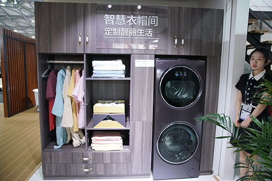 在衣帽間,海爾也提供了洗滌烘干的一體機來方便用戶清潔衣物,洗衣機會根據衣物的材質做最優化的洗滌方案。