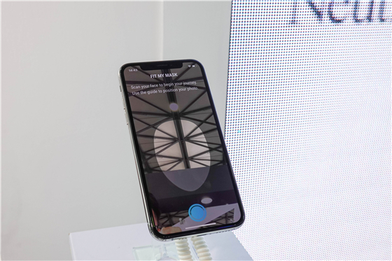 MaskiD的定制需要一臺具備紅外景深傳感器的手機作為硬件支持。在APP中,通過傳感器的精細掃描獲得用戶臉部大小、鼻子形狀、眼睛距離、唇部寬度等各種數據,測量精度可準確至0.1mm。