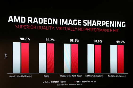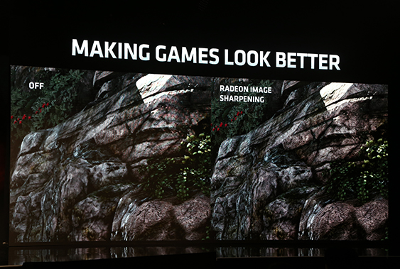 此外,還有另一項銳化技術——AMD RADEON IMAGE SHARPENING,對游戲性能幾乎沒有影響,就現場演示來看,可提升整體畫面的清晰度,而且該技術由驅動實現,沒有具體游戲限制,RX 5700系列顯卡最新版的驅動中就會提供。