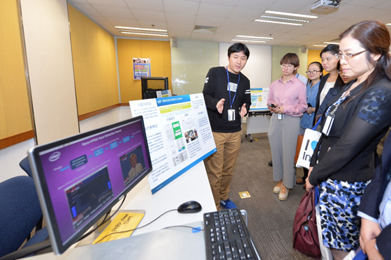 工作人員為媒體現場展示英特爾亞太研發中心最新研發成果