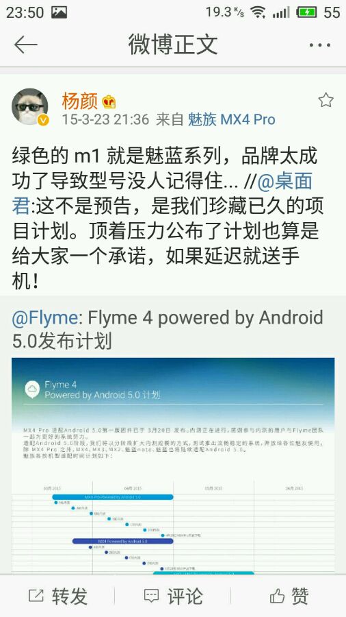 為了給今天的演唱會造勢,魅族楊顏這幾天也是頻繁發微博吸引網友的眼球。小編昨晚隨意瞄了一眼楊顏微博下面的評論,發現其中有一個微博用戶在投訴魅族的售后問題。微博用戶“酷酷的兔斯基先生”買了魅族MX5手機,摔壞了屏幕去售后維修,但售后告知他廠家目前沒有MX5的屏幕可用于維修更換,你可以選擇用這臺損壞的MX5另加900元更換一臺MX6手機,或者等待廠家的屏幕到貨通知。這位微博網友就這樣傻傻的等了2個月,但并沒有等來MX5屏幕的到貨通知,而是被告知,現在如果想用這臺損壞的MX5折價更換MX6,需要再補1200元了。該微博網友在微博上多次@魅族官方的賬號,但魅族官方沒有回復他。根據國家的三包法規定,手機生產廠家需要在手機停產后的2年內保證該款手機的維修物料的供應,而現在魅族對上市才僅僅1年的手機就不提供維修物料,這簡直是在公然藐視國家的法律規定。