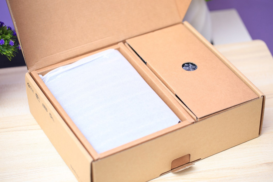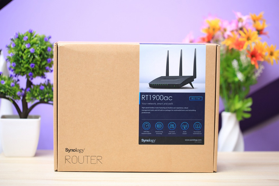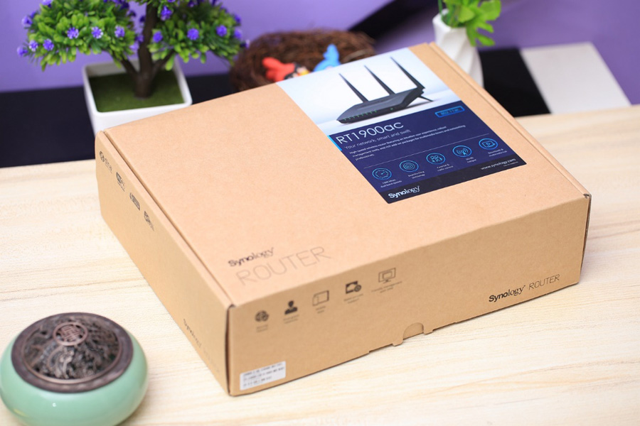 群暉RT1900ac外包裝采用牛皮紙,簡潔大氣而環保,在正面有一張產品介紹的貼紙。