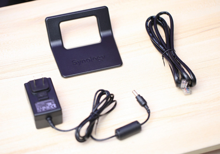 群暉RT1900ac無線路由器的配件并不多,除了網線,電源適配器,還有一個樹立支架。