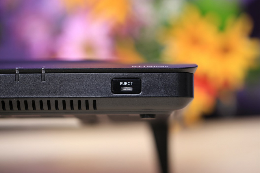 在路由的下方還有一個EJECT按鍵,在拔出SD記憶卡或者是USB外接設備時,按下EJECT鍵,才能確保外接設備安全拔除,避免造成不必要的資料損失。