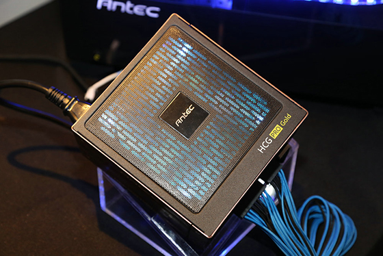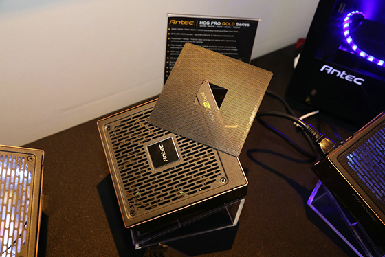 在展會(huì)上,各家品牌都展出了不同的RGB燈光解決方案,把燈光從頭到腳全副武裝。安鈦克也趕上了熱潮,為我們帶來了多款炫光RGB電源,將“光污染”進(jìn)行得更加徹底!圖中的HCG PRO GOLD Series電源周邊用鋁殼包圍著,并采用了金色金屬拉絲工藝設(shè)計(jì),其內(nèi)部擁有RGB風(fēng)扇,背面還有一個(gè)RGB控制端口,與機(jī)箱控制端口連接后能夠控制整臺(tái)機(jī)器的燈光效果,能夠與Antec P110搭配使用。