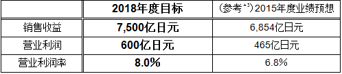 ■業(yè)績(jī)目標(biāo)*2:                             匯率設(shè)定:1USD=115日元、1EUR=130日元