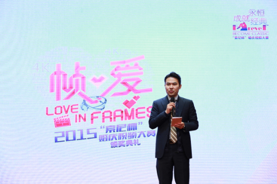 孫自力總監就本屆大賽的情況進行了發言,他表示:2015年“索尼杯”婚慶視頻大賽巡展遍布了中國9個城市(南京、合肥、杭州、重慶、青島、鄭州、西安、昆明、廣州),大賽在網絡上已成為行業熱議的話題,參賽作品呈現創作內容多元化,拍攝技術專業化,制作流程系統化等特點。