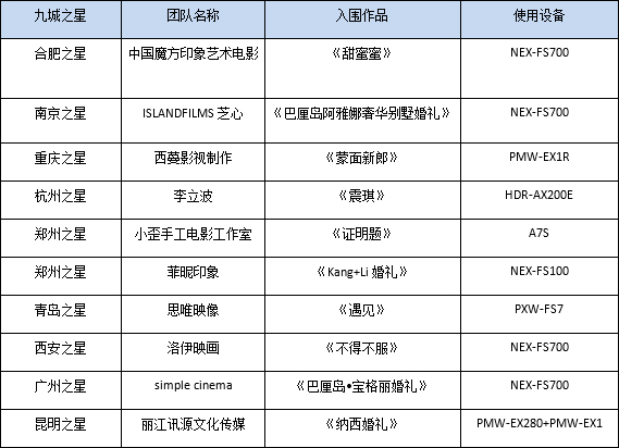 第六屆“索尼杯”婚慶視頻大賽獲獎作品名單