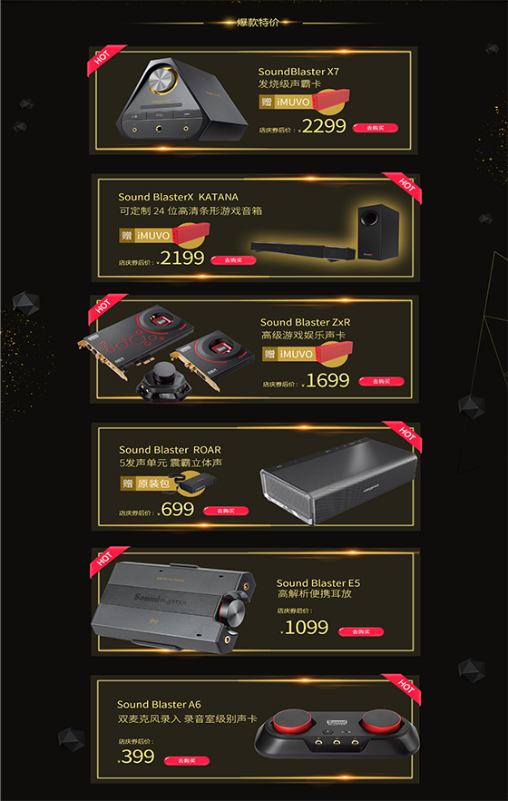 2017年10月,創(chuàng)新科技的聲霸卡系列研發(fā)至今已經(jīng)歷經(jīng)30年成長,在30年的時間里,SoundBlaster享譽全球,已成為聲卡的代名詞。恰逢SoundBlaster30年周年慶典,創(chuàng)新科技旗艦店揭開狂歡帷幕,10月10日0點至10月20日24點,你想得到想不到的優(yōu)惠全在這里。