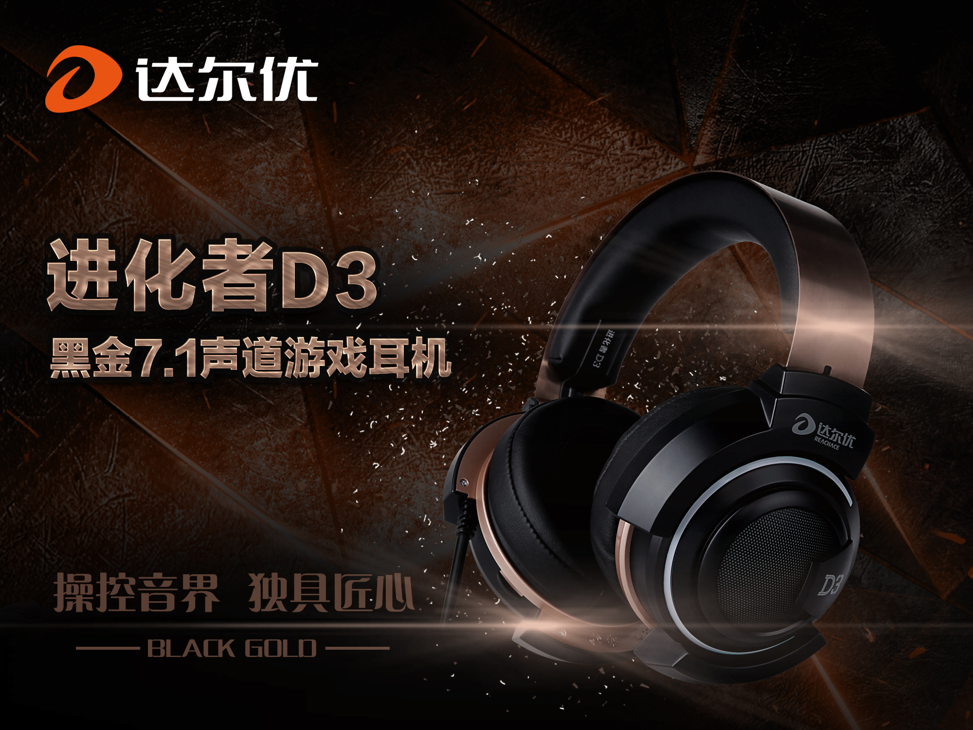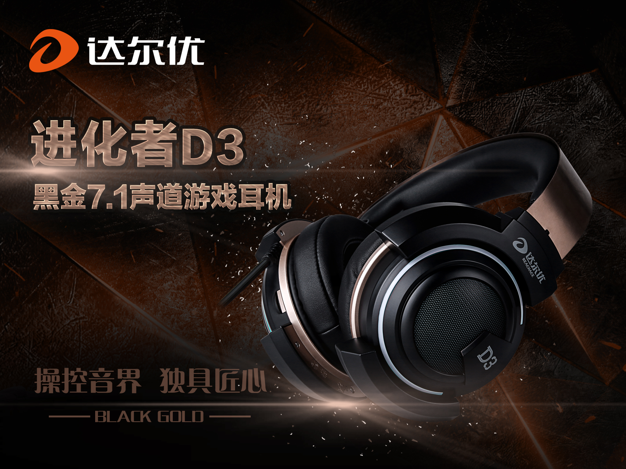 達爾優進化者系列游戲耳機是2015年推出的游戲耳機,專注于游戲體驗,D3則是其中的佼佼者,全包式的設計更適合游戲玩家,經過調校的音效和隱藏式麥克風對于游戲娛樂都有很好的體驗。黑金版虛擬7.1聲道令效果更佳,給你帶來更好的游戲體驗。