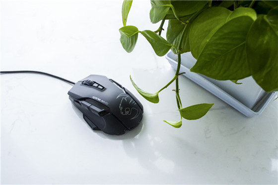 KONE AIMO游戲鼠標(biāo)的最大尺寸約為:125mm×76mm×44mm,重量約為130g,要比KONE EMP重了將近20g,對(duì)中大手型玩家們比較友好。