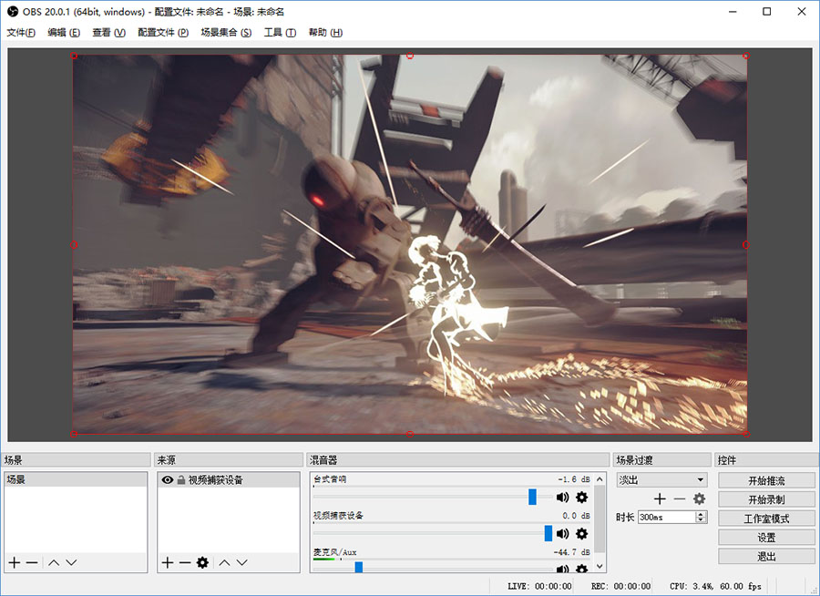 小編下載一個OBS直播軟件,OBS是Open Broadcaster Software的簡稱,是一個免費的開源的視頻錄制和視頻實時流軟件。其有多種功能并廣泛使用在視頻采集,直播等領域。OBS直播軟件相比其他軟件,他的占用資源相對較少,對配置要求相對要低一點,它錄制格式MP4,不用再次壓縮。其不限上傳流量、FPS、解析度,輕松高畫質1080P 60FPS 以及高音質320kbps。