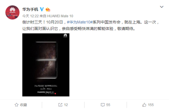 備受矚目的華為Mate 10系列手機已于昨日在德國慕尼黑完成了全球發布,按照慣例,華為還將在國內舉辦一場發布會。今日午間,華為手機官微公布了Mate 10系列手機的國內發布會信息,定檔10月20日,將在上海舉辦。