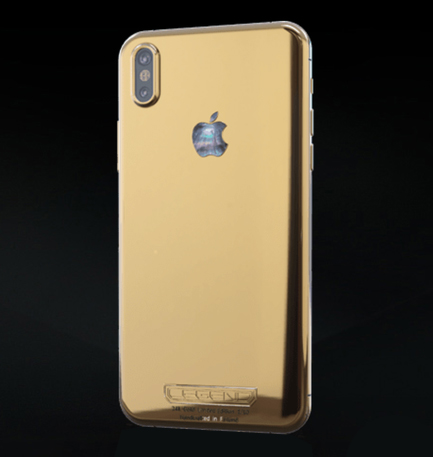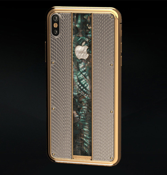 先從便宜的開始欣賞,在Legend的這些定制款中,最便宜的是Aurum版,售價2950歐元,約合人民幣2.3萬。主要的變化是采用24K鍍金背殼,而且背部的蘋果Logo也采用了珍珠母材料進行鑲嵌,在一整塊金磚般的手機觀賞上顯得尤為突出。