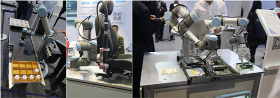 優傲機器人展位為觀眾展示了旗下協作機器人的多種用途,吸引了不少人駐足觀賞。作為可編程的協作機器人,UR機器人可根據用戶的需求進行多樣化的功能拓展,實現不同的工作模式。優傲機器人在會場展示了精細的機械組裝、產品加工、貨物搬運等多種工作模式。