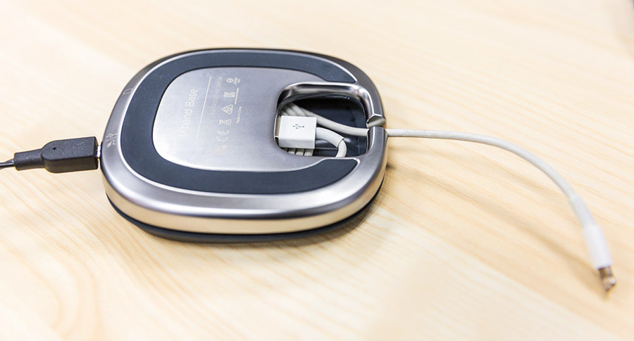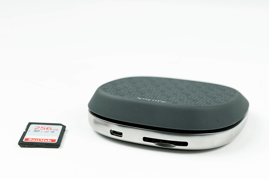 閃迪欣享自動備份充電座外形設計簡潔,一個充電座和一根電源線,底部金屬頂部橡膠,中部一個環繞槽可以讓用戶井然有序地收納Lighting電線。內置了一個256G的閃迪SD存儲卡,由該卡作為充電座里的存儲媒介,如果備份的SD卡寫滿可以將該SD卡彈出來,把別的SD卡插入作為新的備份存儲媒介。
