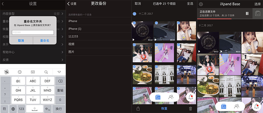 設置功能里是一些基本的管理功能,包括有重命名備份文件夾以及恢復備份等。