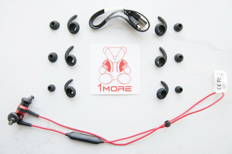 配件方面,一根Micro USB充電線,一張1MORE小熊貼紙和多套耳套。算上已經(jīng)裝在耳機上的,萬魔為iBFree用戶提供了大、中、小三套不同尺寸的耳套,讓不同耳形的用戶都有最合適的選擇,獲得更好的佩戴體驗。