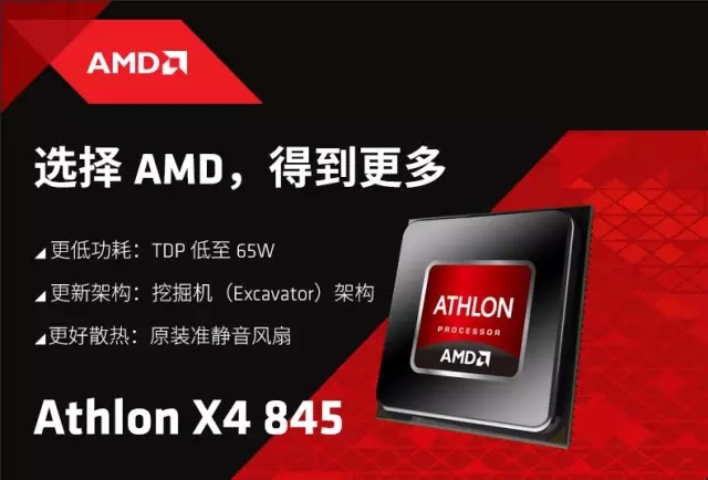 速龍四核845的TDP功耗突破性地降至了 65W,是現在AMD唯一一款采用了四核全新核心”Excavator”(挖掘機)的臺式機處理器,其接口使用AMD主流的Socket FM2+,并搭配2MB二級緩存。速龍四核845默認主頻為3.5GHz,通過AMD智能超頻技術,可以進一步自動提升到3.8GHz,在性能方面卻絲毫不遜于之前功耗達到95W的860K處理器,功耗大幅降低同時其搭配了原裝準靜音風扇,真正做到了65W的功耗,95W的性能。