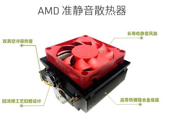 AMD將四核速龍880K盒包原裝風扇升級為Silence2.0高級熱管散熱器兼顧散熱之余保持靜音效果,是四核880K新版標配散熱器的最大特色。這款SILENCE 2.0高級熱管散熱器由知名散熱品牌酷冷至尊打造,使用了雙真空冷凝熱管和大面積鎳合金散熱底座的組合,可以全面提升散熱效果。與此同時,更大尺寸長壽靜音風扇的加入,也讓這款SILENCE 2.0高級熱管散熱器在確保散熱效率的同時,進一步提升了靜音表現。最后,新款SILENCE 2.0高級熱管散熱器整體使用了十分成熟的回流焊工藝+扣鰭設計,支持PWM溫控,確保散熱器經久耐用品質出色。