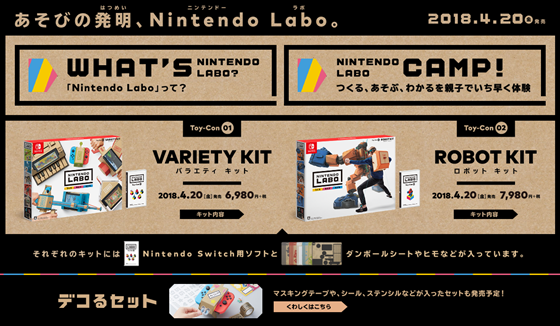 首發的Nintendo Labo有“VARIETY KIT”和“ROBOT KIT”兩套,預計于4月20日發售。