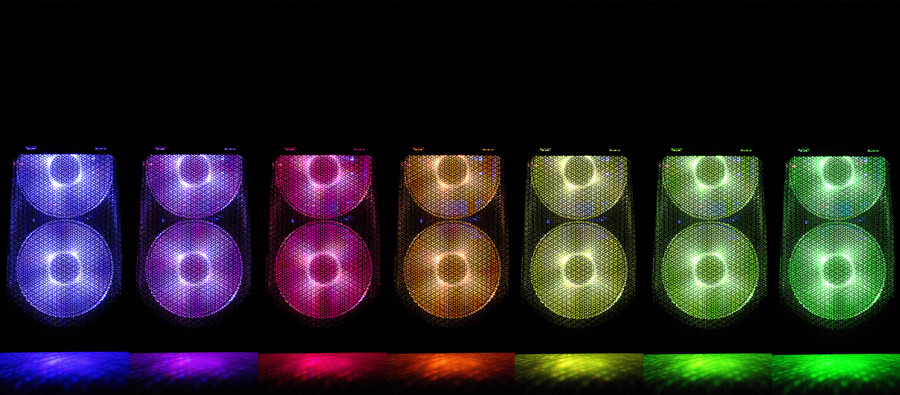 MB500至尊版的一大賣點就是RGB燈效,這也是我們最為期待的亮點。盡管機箱附贈的三個RGB風扇不帶炫彩功能,但效果依舊令人眼前一亮。