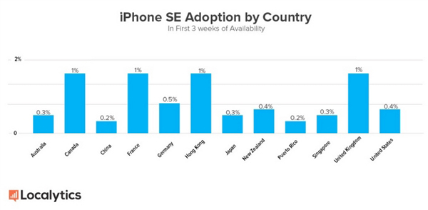 最近,Localytics給出了一份最新統計,而數據顯示,加拿大、中國、法國、香港、日本、美國、英國都在這份榜單中,但SE整體的歡迎度非常低,中國排在12個國家最后,接受度僅為0.2%,好一點的法國、香港也只有1%。