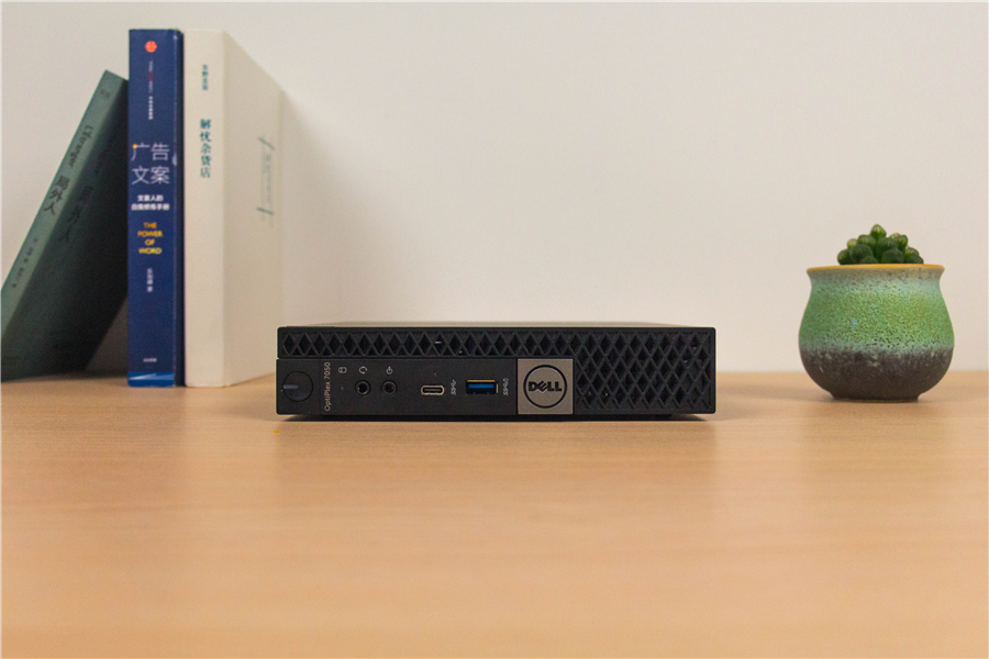 戴爾OptiPlex 7050給我們的第一印象就是小。它的三圍是17.8 x 3.6 x 18.2 cm,平放姿態時還沒我的小號鼠標墊大。拿在手里的第一反應是輕,僅有1170 g,這個重量比大部分的輕薄本還要輕。