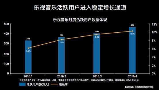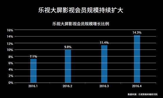 此外今年1-4月,樂視大屏影視會員規模持續擴大,比例從7.1%增長至14.3%;樂視音樂活躍用戶從340萬人增長到439萬人,進入穩定增長通道;大屏游戲用戶規模三個月增長188%。超級電視日均開機率達65%,日均開機時長達5.8小時,周均點播時長21小時。不僅如此,超級電視已成為社會精英人群家庭標配,孫紅雷、李小璐、李開復、范冰冰、汪峰、陸毅、趙薇等均是使用者。