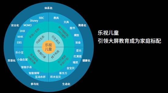 2015年12月,樂視超級電視正式上線樂視兒童。這是基于超級電視大屏生態為兒童定制的家庭教育服務,具備體系化、雙語化、參與化、健康化、安全化、簡易化、生態化七大特點。