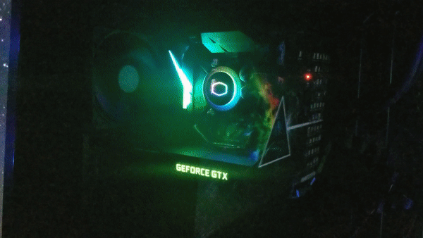 H500M自帶的兩把200mm ARGB風(fēng)扇光效可謂絢爛,冰神G120 RGB的冷頭光效也相當(dāng)令人滿意,與ROG主板的同步效果使得整體燈光在默認(rèn)狀態(tài)下有種“律動(dòng)感”。值得一提的是,ROG STRIX Z370-F GAMING主板自帶的RGB燈組相比之下就非常刺眼了,遠(yuǎn)不及酷冷光效的溫潤(rùn)。我們可以用兩張動(dòng)圖來(lái)感受一下: