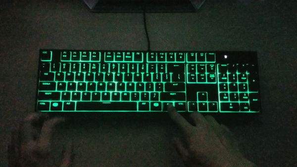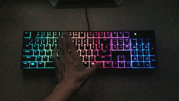 前文有提過(guò),由于采用了酷冷的金剛軸,在RGB燈效方面相比MX軸有先天優(yōu)勢(shì),CS100的鍵盤(pán)光效甚至能夠與一些高端產(chǎn)品相媲美。這里我們通過(guò)動(dòng)圖來(lái)感受一下。