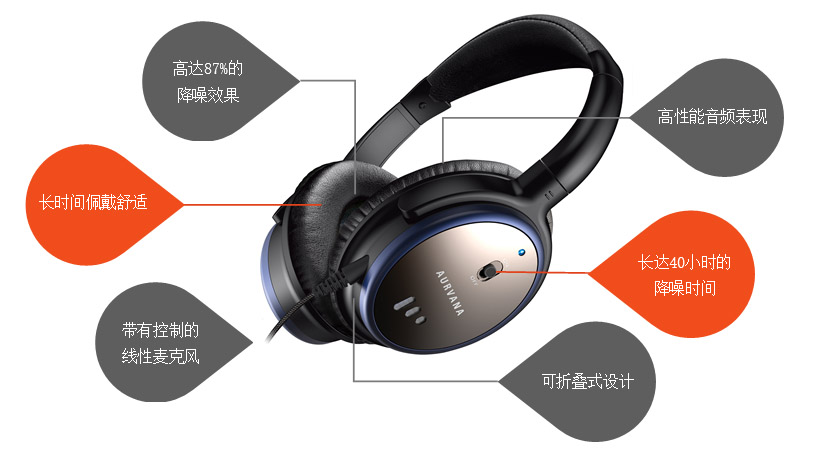 Aurvana ANC耳機使用特殊的內置多麥克風設計,并將其嵌入兩邊耳罩,通過動態監聽進入耳朵內的外部噪音,智能消除外部環境噪音,讓用戶們更能專注享受自己所愛的音樂。此耳機亦配有經專業調校的40毫米釹磁體發聲單元,繼承Aurvana系列廣受好評的均衡、清晰的優秀音質。