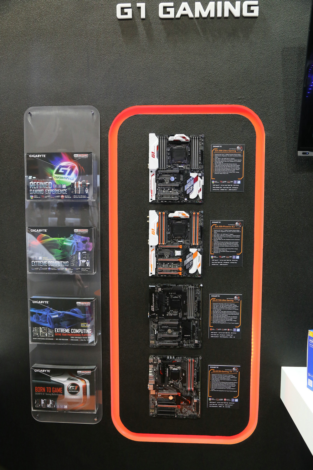 除此之外,技嘉還重新打造了X99系列平臺,如專為游戲發燒友打造的X99-Ultra Gaming除了全面升級的RGB LED燈效,拓展插槽提供了四根PCI-E 3.0 x16和一條PCI-E x1插槽,同時也搭載了1個M.2 SSD插槽,1個M.2 WIFI插槽,一個U.2接口與10個SATA3接口。當然除了以上兩款主板, X99-Phoenix SLI、Z170X-Designare、Z170X-Ultra Gaming等9款主板新品也受到了頗多的關注。