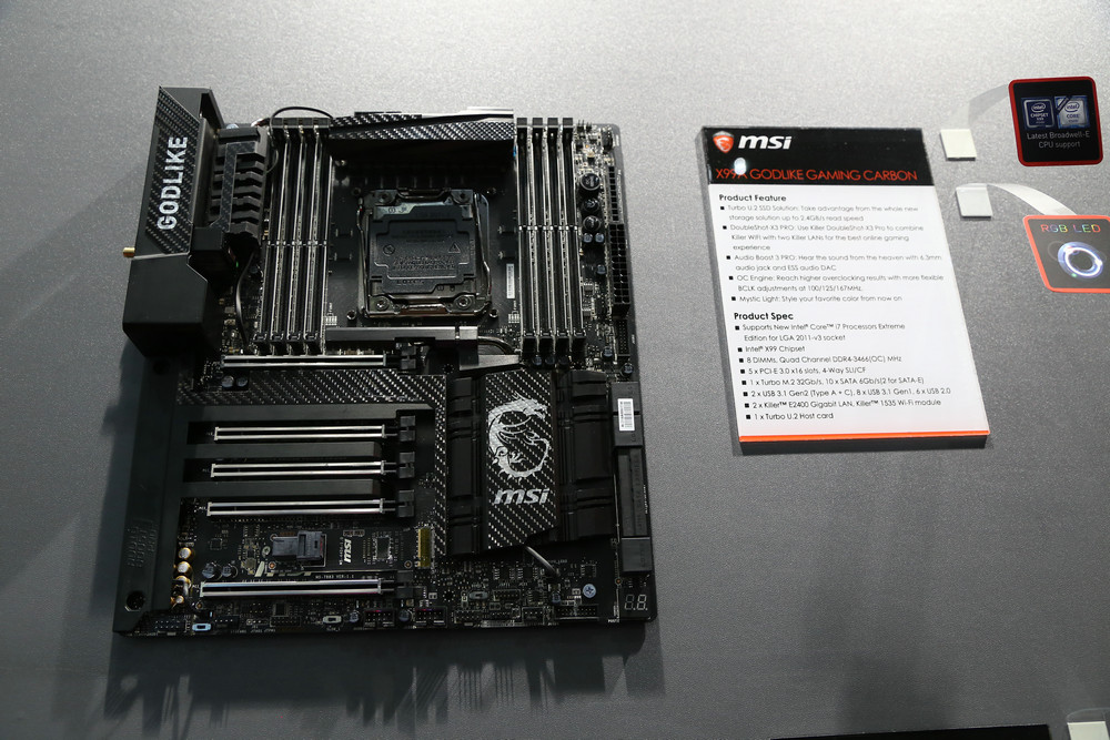X99A GODLIKE GAMING CARBON 主板主打專利Turbo Socket提供額外的針腳,一舉將Intel® Extreme處理器突破超頻極限。DDR4 Boost搭配鋼鐵裝甲的設計,讓儲存設計擁有無與倫比的性能和穩定性。整合Killer? DoubleShot-X3 Pro游戲網絡設計,并支持4-Way NVIDIA® SLI 以及AMD® CrossFire多顯卡技術,享受絕佳的高畫質高幀數,X99A GODLIKE GAMING CARBON制霸VR-ready主板!