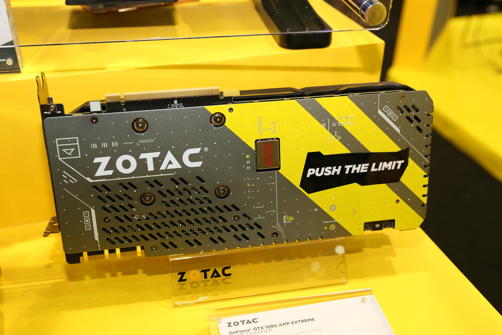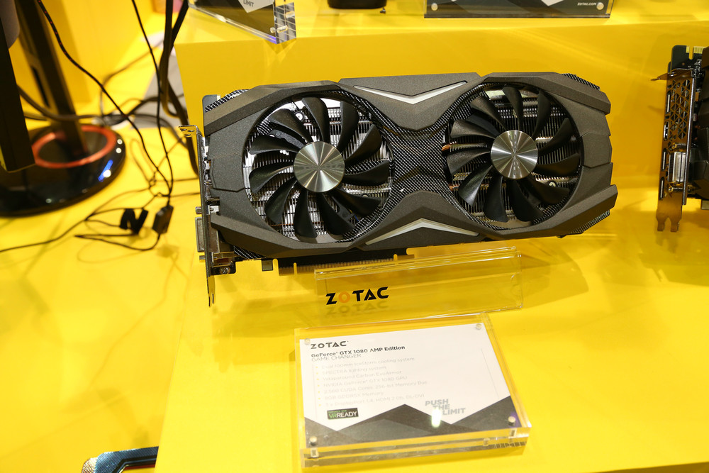 說到VR也就不得不說索泰最新推出的索泰GeForce GTX 1080 Founders Edition、索泰GeForce GTX 1080 AMP Edition以及索泰 GeForce GTX 1080 AMP EXTREME Edition這三款顯卡了,雖然三款之中只有索泰GeForce GTX 1080 Founders Edition公布了詳細的規格參數,其采用了16nm工藝,核心頻率1607MHZ,超頻可達1733MHz,顯存頻率10000MHz,8GB DDR5X 顯存,256bit顯存位寬,支持最大分辨率4096*2160。顯卡支持PCI Express 3.0 1X,DP接口x3,,HDMI接口x1,DVI接口x1,電源接口為8pin。