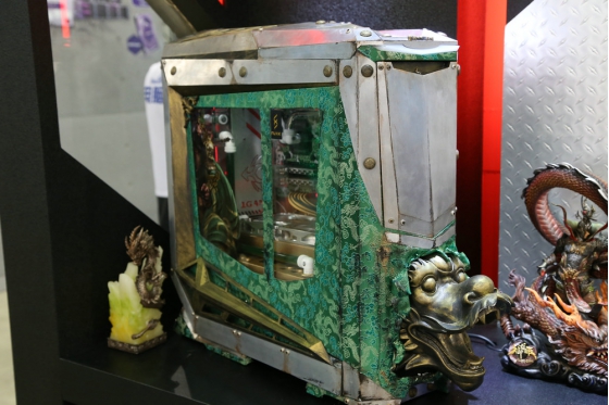 現(xiàn)場擺設(shè)了一臺由國內(nèi)知名MOD大師刑凱先生親自操刀的MOD機(jī)器,以御龍在天游戲背景作為MOD主題和創(chuàng)意,成功MOD了一臺精致的“御龍在天——武圣”。并于本次簽約儀式后在京東拍賣場進(jìn)行拍賣,截至到簽約儀式結(jié)束,拍賣價已經(jīng)達(dá)到了50500元。