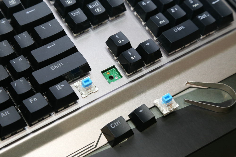 最后我們來看一款機械鍵盤,全新設計的青軸采用了兩段式插拔設計,從結構上下手,讓鍵盤做到真正的防水防塵。