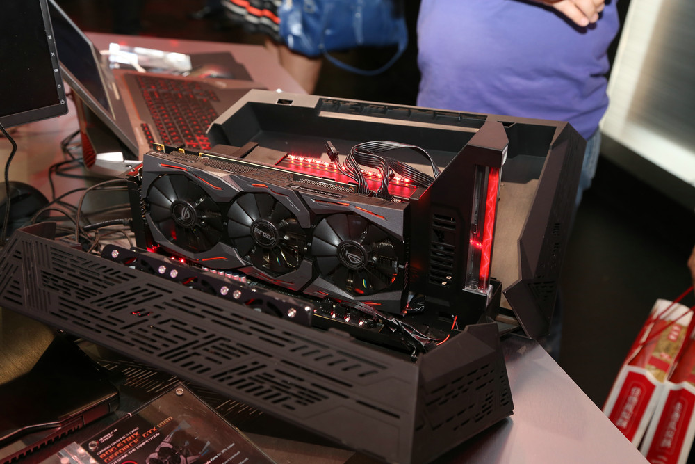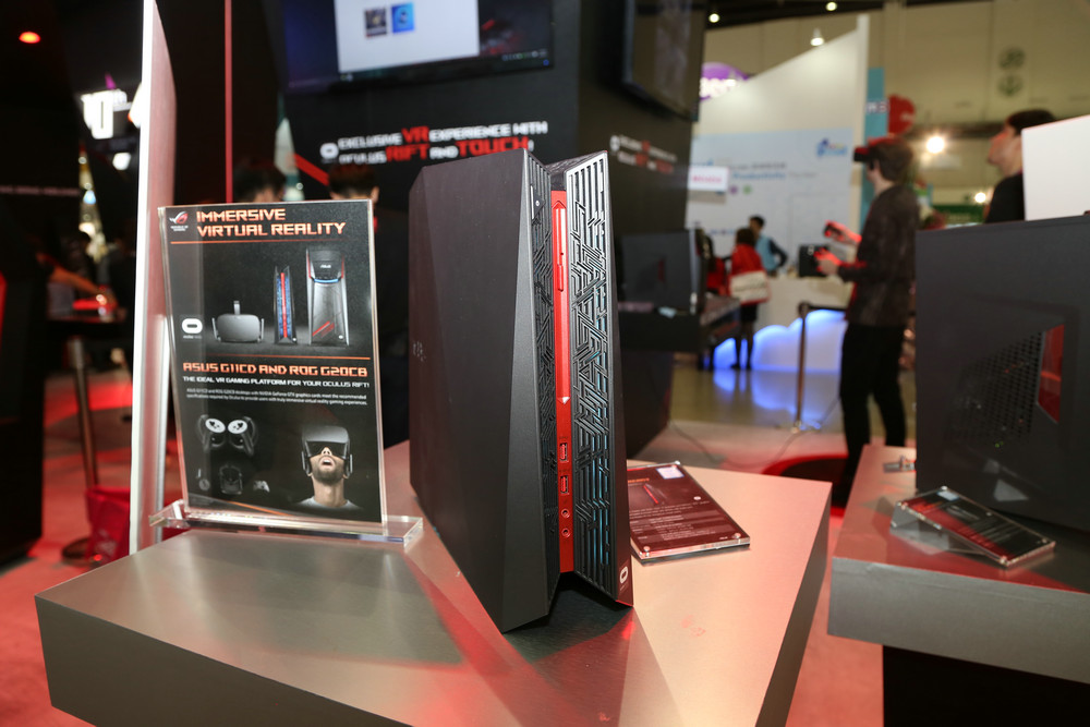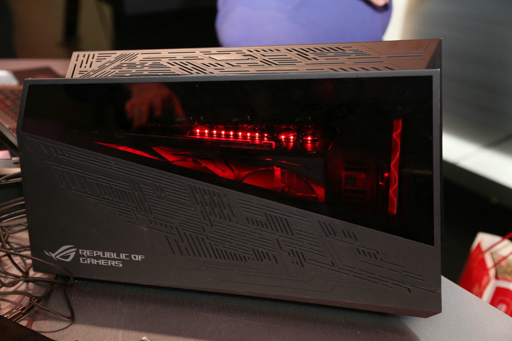 現場展示了ROG G31 Edition 10這款“全球最緊湊”的臺式游戲主機,它內置了雙路Nvidia GeForce GTX 1080(SLI交火),是具備了4K超高清游戲的利器,外觀方面采用了紋路設計,并采用了3D真空腔均熱板散熱技術。