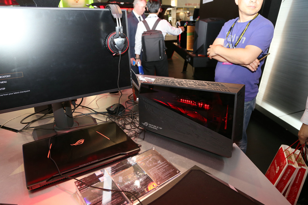 其中一款GX800水冷式電競筆記本電腦,也是在現場賺足了眼球,這款筆記本除了水冷之外,還搭載了Intel  K系列處理器,最高可超頻至4.4GHz,顯卡則采用了GTX980,與此同時還配備了進階機械觸感電競鍵盤,用戶可自行設定它的RGB LED光效,被稱為史上最強的筆記本也是不為過。