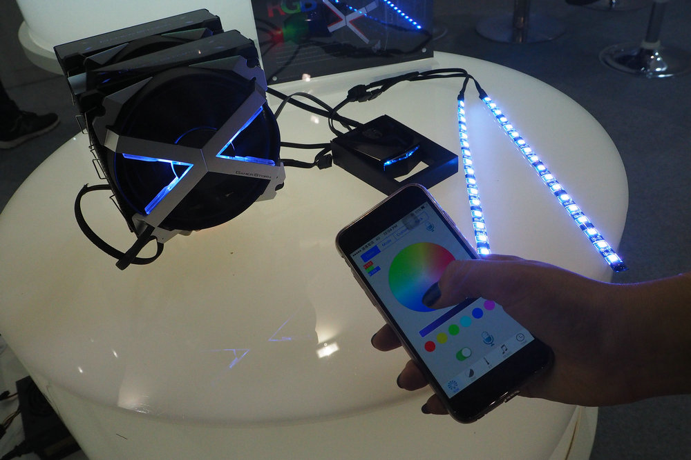 現場最引人矚目的則是用戶可下載九州風神的App來控制風扇的顏色,達到自己想要的DIY光效,不得不說九州風神的腦洞是相當的大啊!不過這也是滿足了眾多DIY玩家的需求。