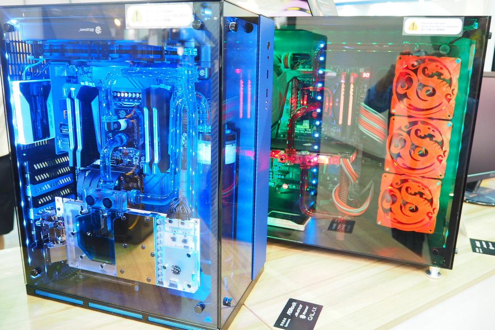 除此之外,現(xiàn)場還推出了幾款采用左右分流設(shè)計的機(jī)箱產(chǎn)品,機(jī)箱材料除了采用了鎂鋁合金之外,躋身前面板以及左側(cè)也采用了強(qiáng)化玻璃,相信許多DIY玩家已經(jīng)自動腦補(bǔ)怎么組裝炫酷的機(jī)箱了吧!