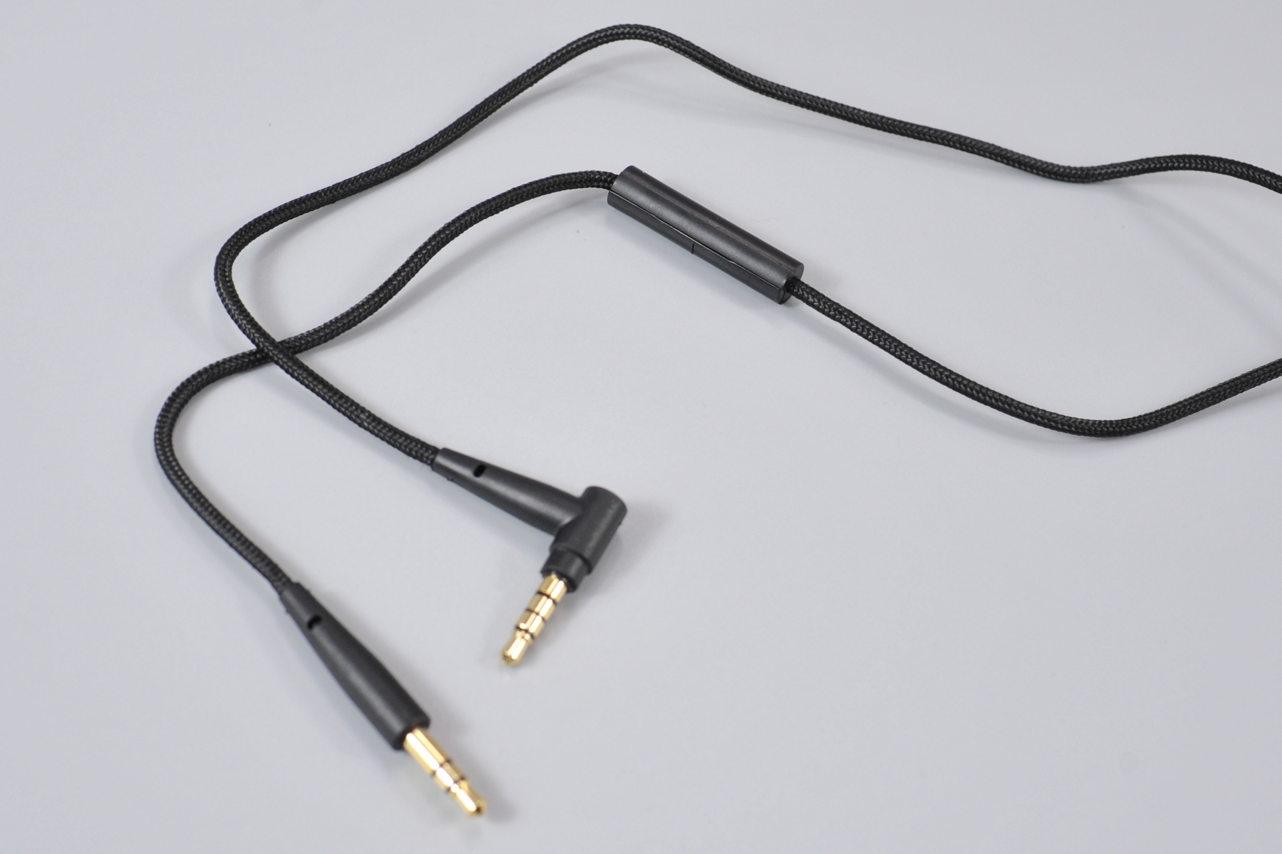 音頻線也采用了尼龍編制的,不管是手感還是耐久性都是不錯的,線控的則包含了麥克風功能,可以用于手機通話,除此外線控還有一個按鍵,但只是用于接聽、掛斷電話以及切換、快進、退曲目的功能,缺唯獨少了音量控制的按鍵。