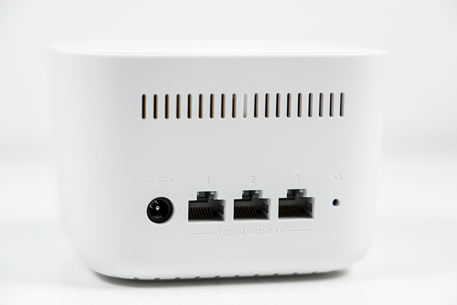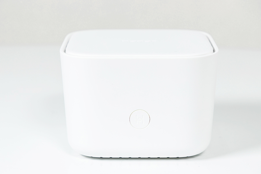 盡管都是白色的外觀配色,但是兩款路由器的造型卻大相徑庭,榮耀路由X2外觀上延續了榮耀路由器產品的一貫設計,沒有天線,屬于小巧方正的造型。頂部有一個陰刻著HONOR的logo,正面有一個HiLink按鍵,可實現一鍵配對HiLink智能家居的功能,在HiLink鍵的上方有一顆不起眼的指示燈。背面是電源接口,3個千兆網口以及一個RESET按鈕。