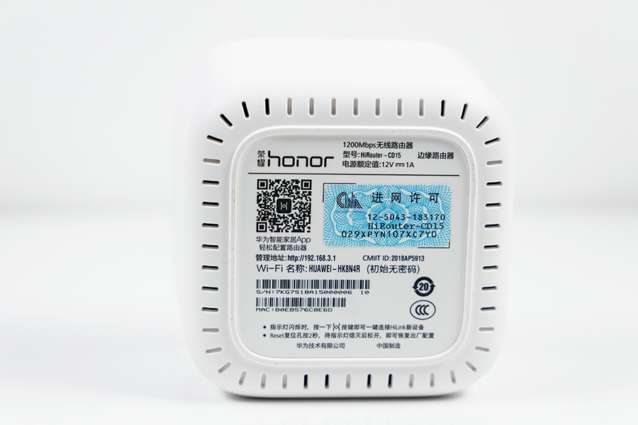 榮耀路由X2的底部標注了產品的相關信息,并有Wifi名稱,連接新設備和恢復出廠設置的操作提示。小米路由器4的底部同樣標注產品信息,除了印有登錄管理后臺的鏈接之外再無其它任何指導性內容。而在散熱的設計上,榮耀路由X2的散熱孔集中在頂部的周圍,背面的上部以及底部四周,小米路由器4則是集中在了路由器底部,并且是類似蜂窩的布局,背部也有3個長條形的散熱孔。就美觀性而言,榮耀路由X2更加耐看一些。
