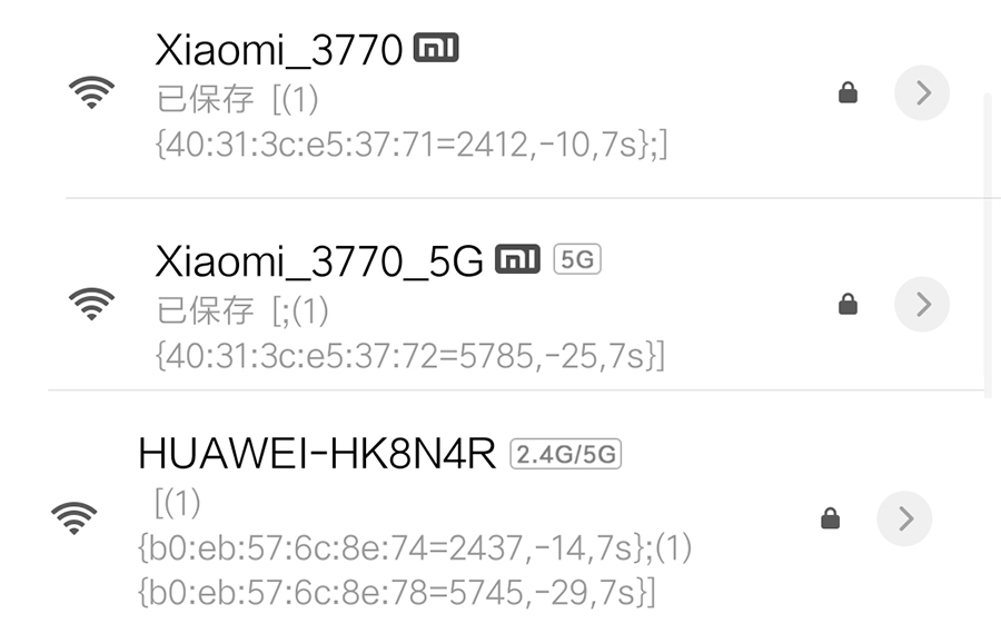 連接成功后,可以發現小米路由器4是將2.4GHz和5GHz頻段分開使用,而榮耀路由X2則是將2.4GHz和5GHz雙頻共用,根據用戶使用的移動設備與路由器的距離自動分配相應的頻段。