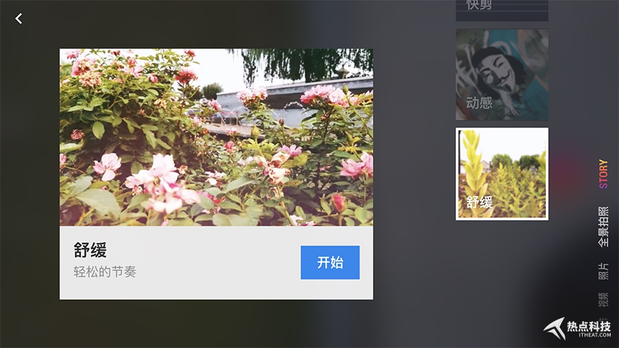 最讓我感覺有趣的功能是Story模式,這個功能對于以前不會拍視頻的用戶來說是個巨大福音,它的本質是提供了一套云臺運鏡拍攝的模版,然后分成4段讓用戶拍攝,拍攝完成后自動合成添加濾鏡,轉場特效和背景音樂,用戶如覺得其中某一段拍攝效果不滿意的話的話還可刪掉重拍,實現傻瓜式的短視頻拍攝。整個短視頻作品總長也就10秒左右,對于抖音發燒友和喜愛發朋友圈小視頻的用戶而言都足夠使用。