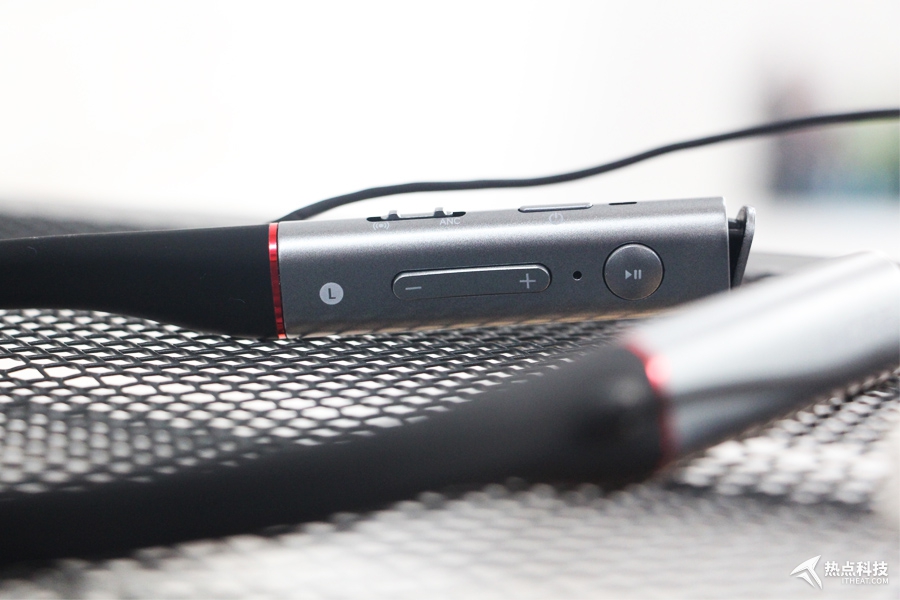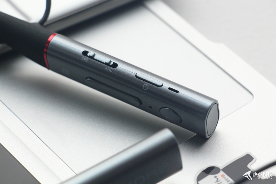 可能是考慮到大部分外貌黨對顏值的重視,1MORE降噪圈鐵耳機兩端采用了鋁合金材質,用標志性的紅圈點綴。左耳集中操作按鍵,耳柄內側有音量加減和播放暫停鍵上方集中了降噪開關和開關機/藍牙鍵等,鍵程反饋清脆。如果是第一次盲操控制這些按鍵的話,想要不費勁的找到對應功能,有點難。