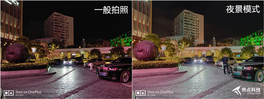 一加對主攝的調校水準在正常的拍攝模式下就很到位了,在一般情境下對高光光源的壓制就能讓照片可用。有時候即便切換至夜景模式,相機也會自動判定無需2秒的多幀合成拍攝,一下就完事,和正常模式出片效果一樣。