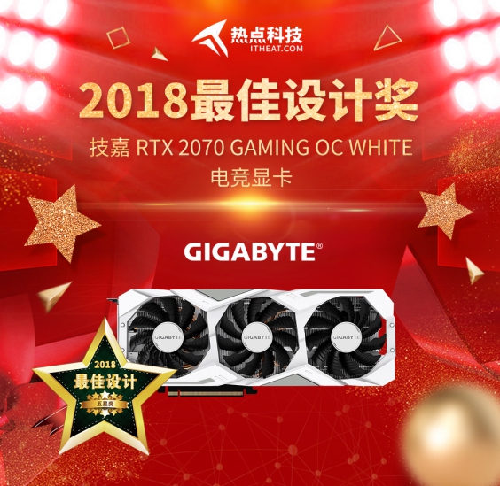 祝賀技嘉 RTX 2070 GAMING OC WHITE 電競(jìng)顯卡在熱點(diǎn)科技2018五星獎(jiǎng)?lì)C獎(jiǎng)盛典中榮獲:最佳設(shè)計(jì)獎(jiǎng)